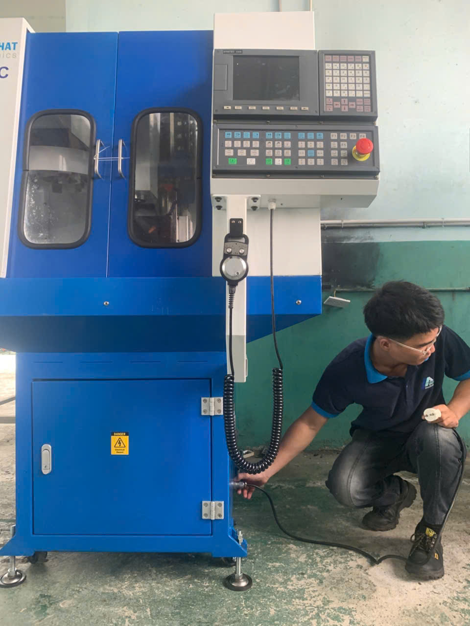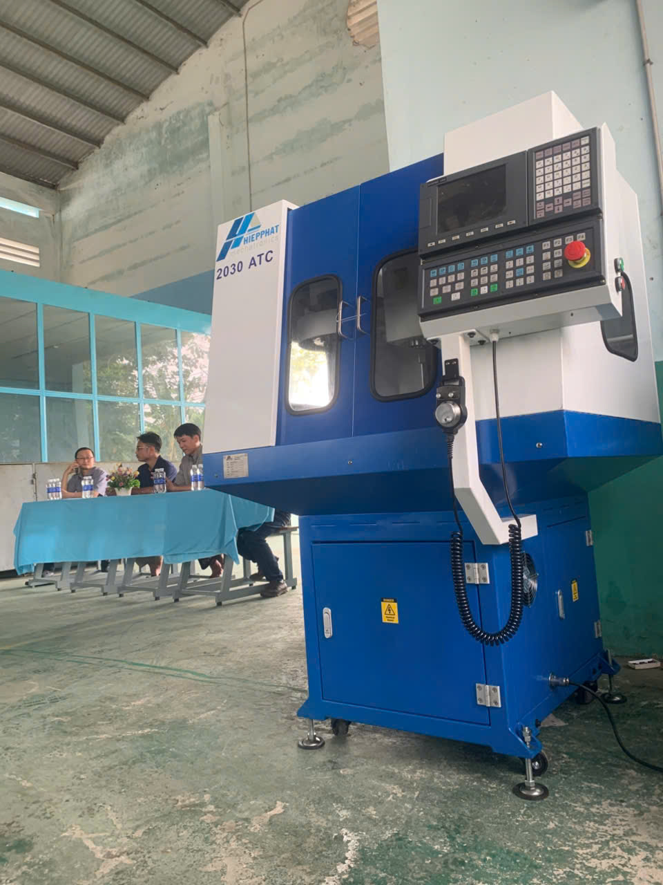 Trong buổi bàn giao, hình ảnh Cha Hiệu Trưởng trân trọng đón nhận hai chiếc chìa khóa biểu trưng không chỉ là một nghi thức trang trọng, mà còn là dấu chỉ của sự gắn kết, niềm tin và sự đồng hành bền chặt giữa nhà trường và quý ân nhân. Tiếp đó, Cha Phó Hiệu Trưởng cùng Cha Trưởng xưởng đã trực tiếp khởi động hai máy CNC dưới sự hướng dẫn tận tình của cán bộ kỹ thuật. Khoảnh khắc ấy như một lời khẳng định mạnh mẽ rằng: món quà hôm nay sẽ không dừng lại ở thiết bị, mà sẽ trở thành giá trị đào tạo, giá trị kỹ năng và giá trị tương lai cho nhiều thế hệ học viên mai sau.